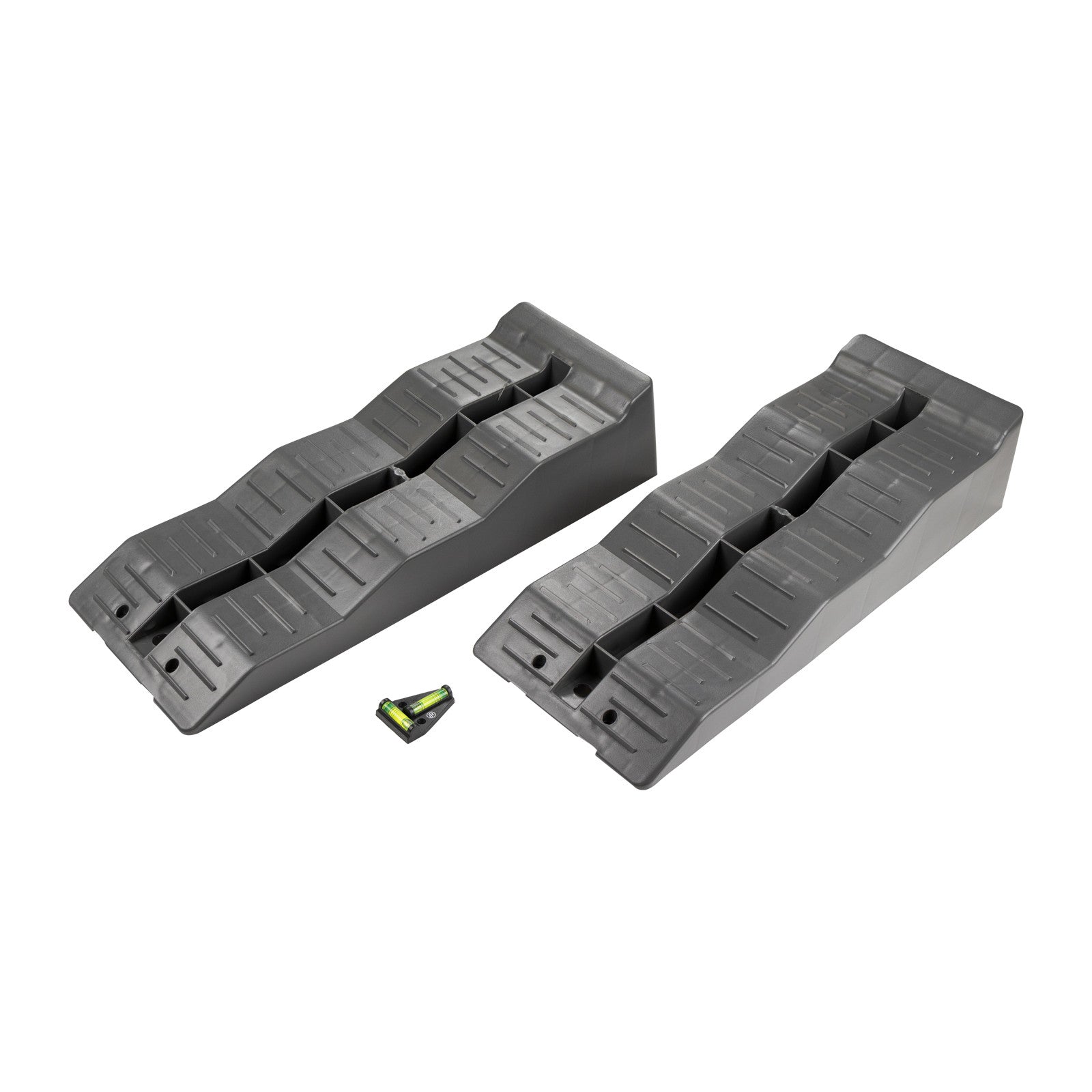 Kliny schodkowe Kliny podjazdowe z poziomnicą T Rampa Level up (szara) z poziomnicą T Pasuje do: kamperów przyczep kempingowych przyczep kempingowych obciążenie 5 ton na oś | 1x kliny schodkowe kliny rampowe Rampa Level up Szara Numer artykułu: 5850116AG | 1x poziomnica T waga krzyżowa Numer artykułu: 5850153AG